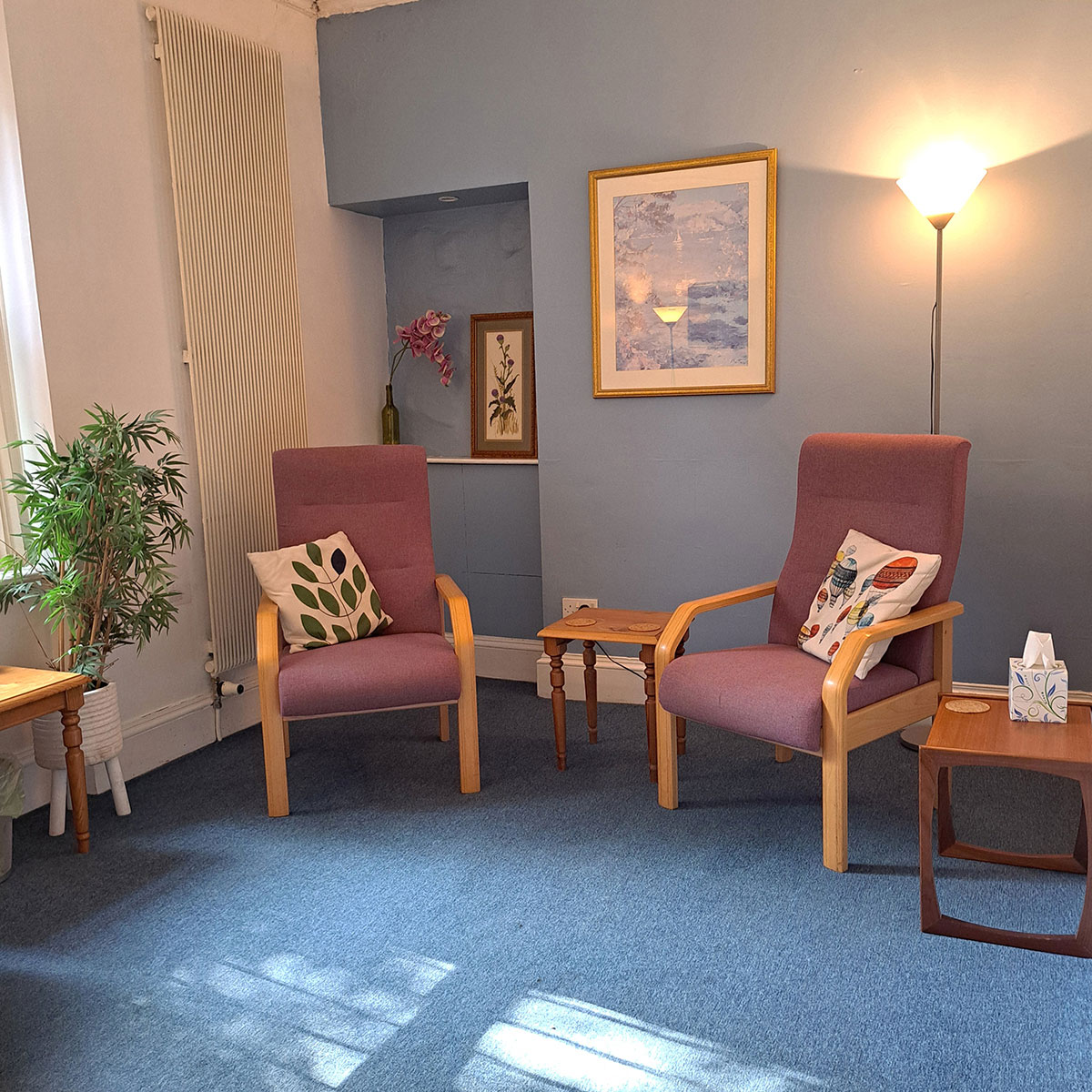 If you are a counsellor or similar, you can rent a room here by the hour, half day or day. We have comfortable rooms of various sizes available, offering peace and privacy. Wifi is available, as is a client waiting room, refreshments and toilet.